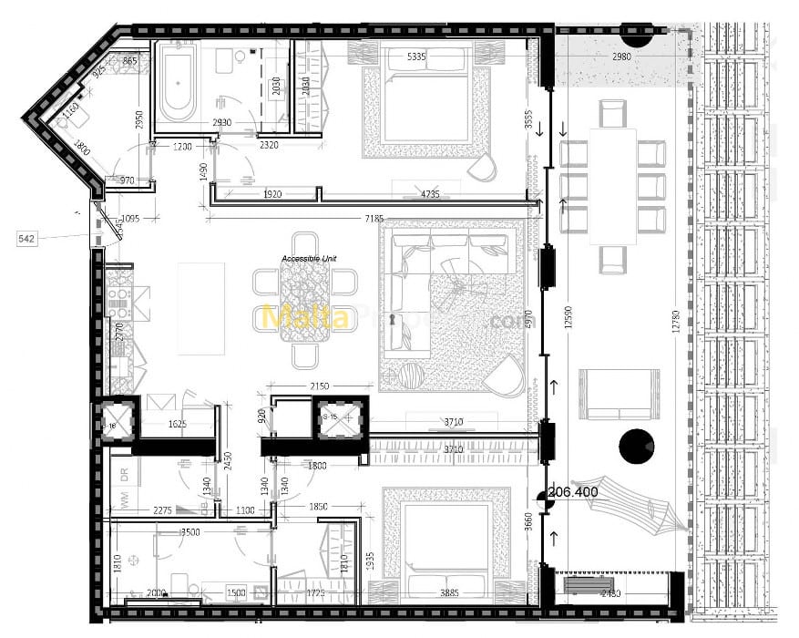 Discover a stylish 4th-floor apartment in Rabat, spanning a generous total area of 166 sqm. This thoughtfully designed home features 2 spacious bedrooms, including 2 en-suites and a main bathroom, along with a practical utility room. The open-plan kitchen, dining, and living area create a welcoming space, seamlessly flowing to a front terrace, perfect for relaxing and enjoying the fresh air. Combining comfort and elegance, this apartment is situated in a prime location. Don’t miss your chance to own this luxurious property—contact us today!