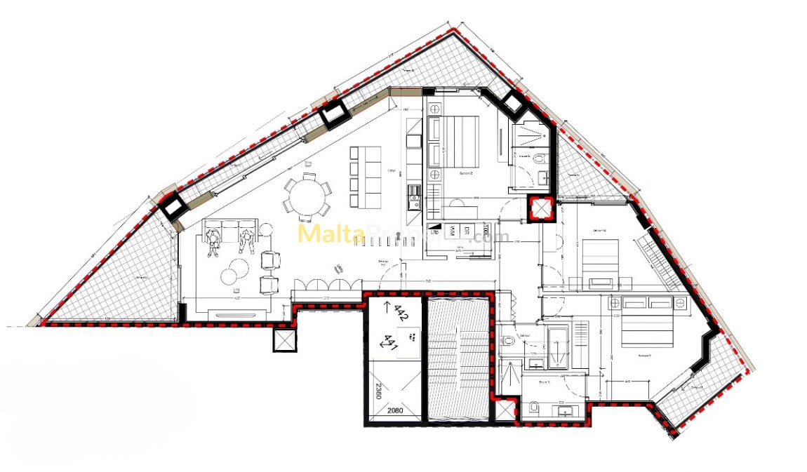 The centrepiece of this home is the open-plan kitchen, dining, and living area, thoughtfully designed to cater to both entertaining and day-to-day relaxation. Enjoy seamless indoor-outdoor living with expansive terraces and balconies that capture the refreshing Rabat breeze and tranquil views.
