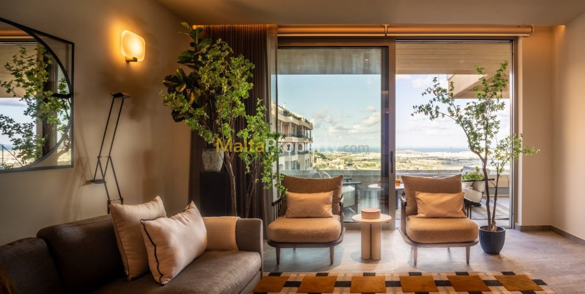 The expansive terraces are the crown jewel of this property, offering ample space for relaxation and gatherings. Unwind in the private jacuzzi while taking in the panoramic views from this elevated position. A lift ensures easy access to the apartment, making it ideal for all lifestyles.