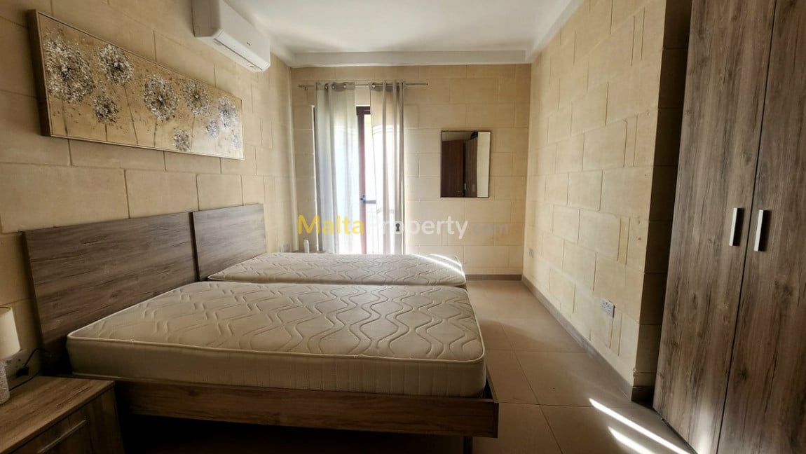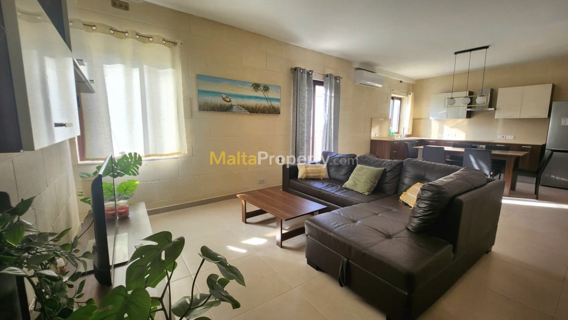 A spacious and fully air-conditioned apartment in the heart of San Lawrenz, featuring 2 bedrooms, 2 bathrooms, an open plan kitchen/living/dining area, front and back terraces with urban views, and modern conveniences such as a dishwasher and dryer. Located on the 1st floor with a lift access, this home is perfect for those seeking comfort and central living in Gozo.